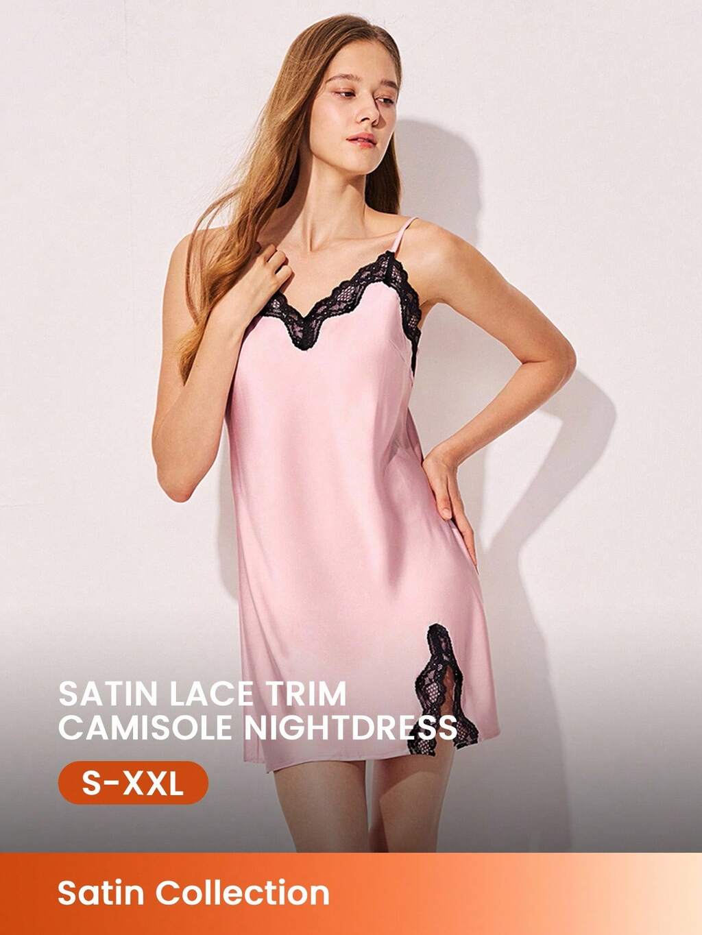 Sexy Silky Satin Lace Trim Pink Strappy Nightdress