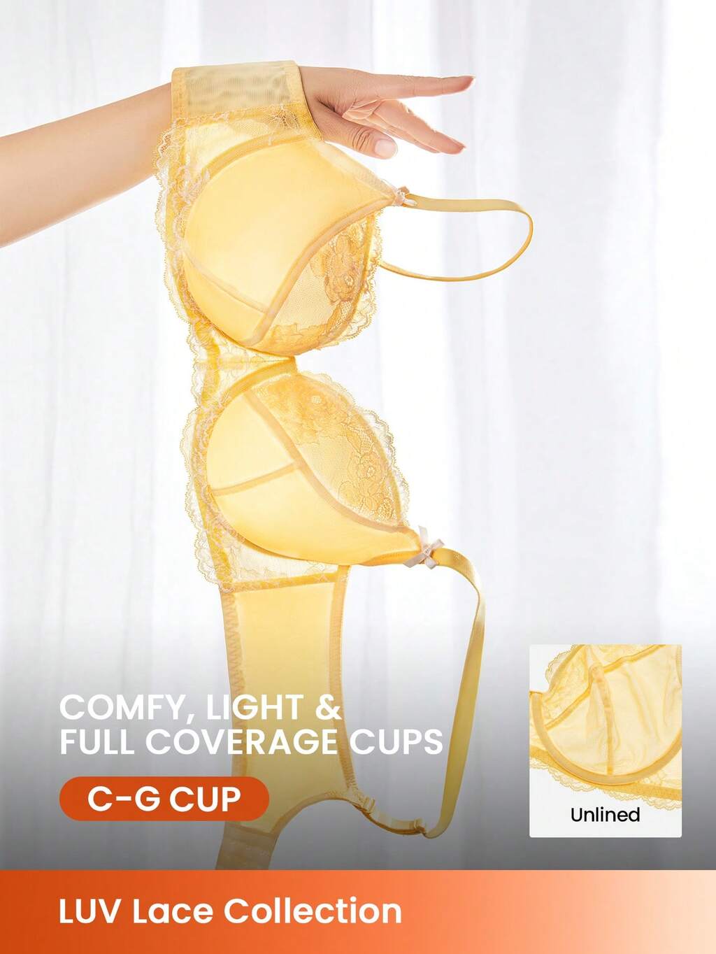 Unlined Full Coverage Side Support Mesh Bra