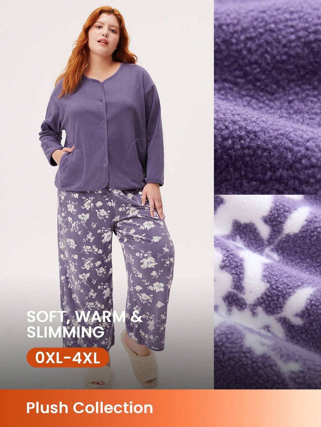Plus Women Velour Button-Up Long Pajama Set