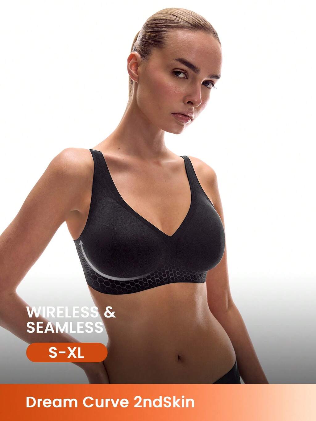 Sujetador sin costuras, transpirable y sin costuras Dream Curve Air Wireless, con escote profundo y sin marcas, en color negro, ligero y pegajoso, talla básica. También adecuado para adolescentes, jóvenes y niñas