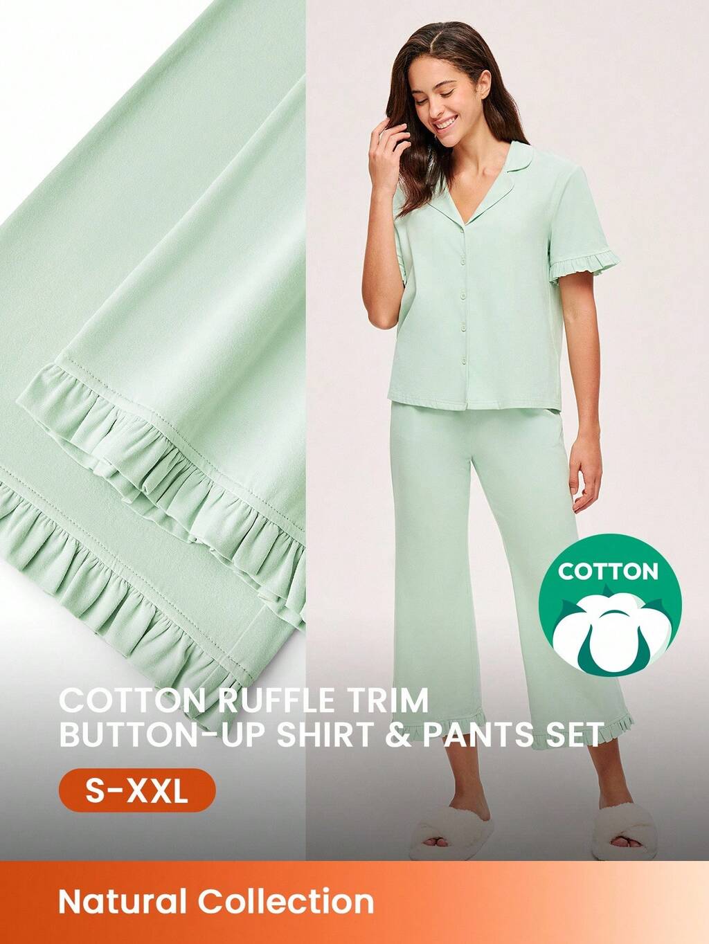 Ensemble de pyjama vert doux en 100% coton pur avec dentelle élégante, Top à boutons et pantalon avec poches. Ensemble de vêtements de détente pour femmes, vêtements de lingerie, pyjamas en coton pour le printemps et l'été