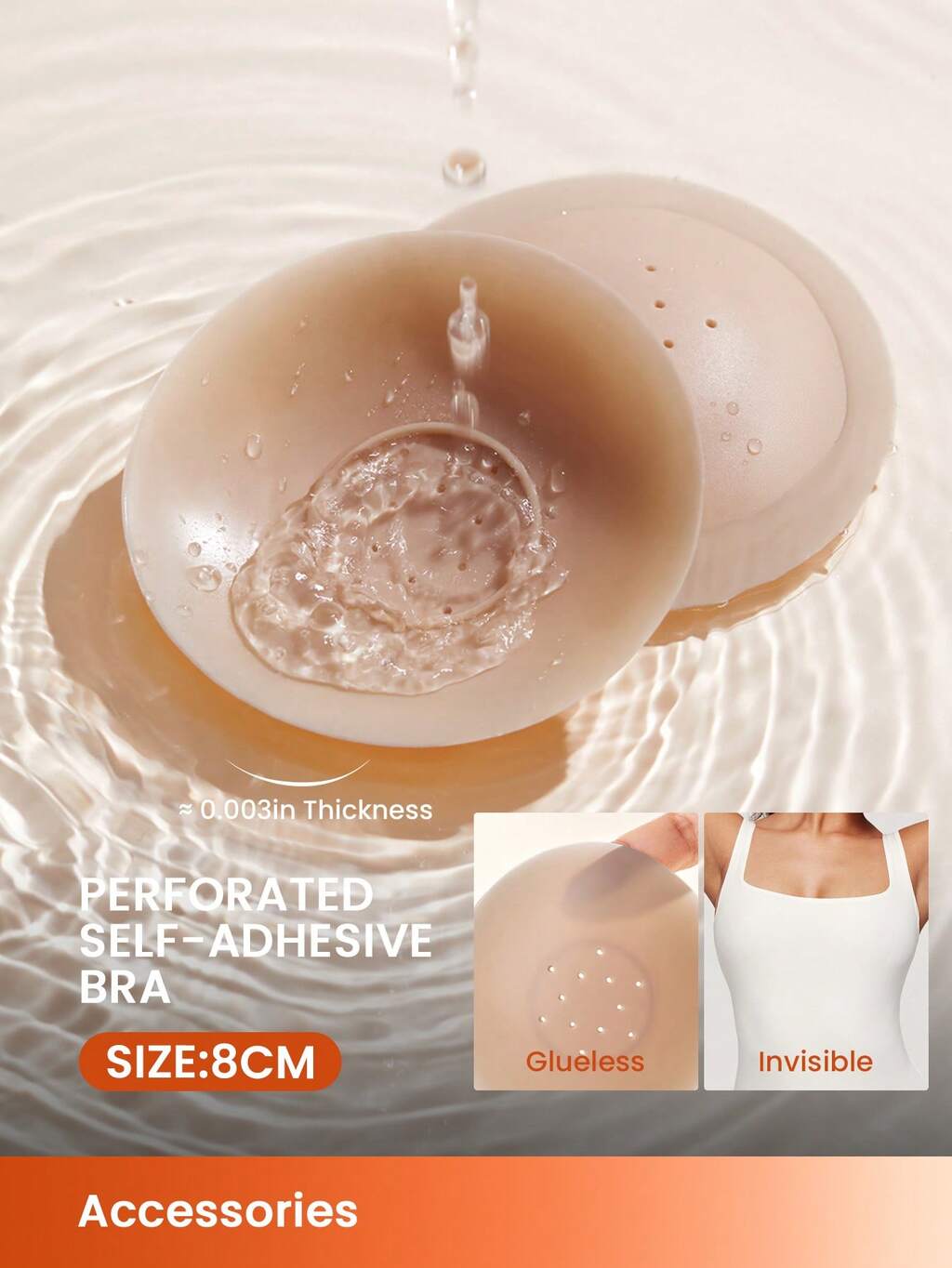 Soutien-gorge de mariage réutilisable, adhésif et autoadhésif, sans bretelles, sans dos, perforé, invisible, en silicone, liftant et aérien - Cannelle