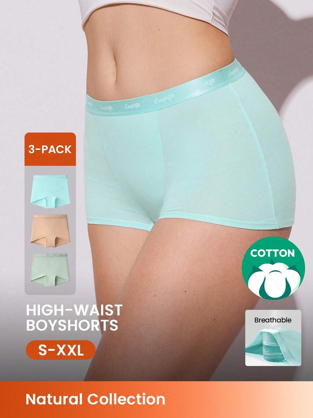 3 packs Culottes boxers taille haute confortables en coton avec logo pour femmes de grande taille