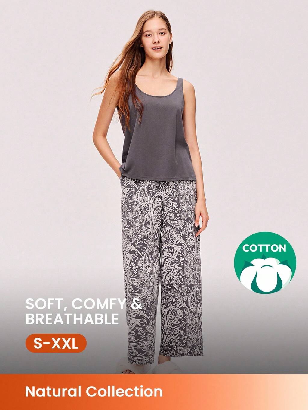 Ensemble de pyjama d'été en coton pur 100% noir, aéré et doux. Débardeur basique et pantalon à motifs. Pantalon avec poches. Lingerie pouvant être portée à l'extérieur. Ensemble de loungewear pour femmes