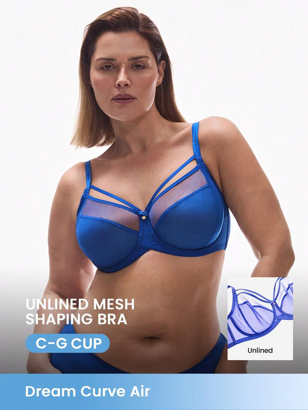 Biustonosz typu minimizer Dream Curve Air Unlined Full Coverage Side Support, przewiewny, niebieski, z siateczki, podstawowy, przewiewny i komfortowy