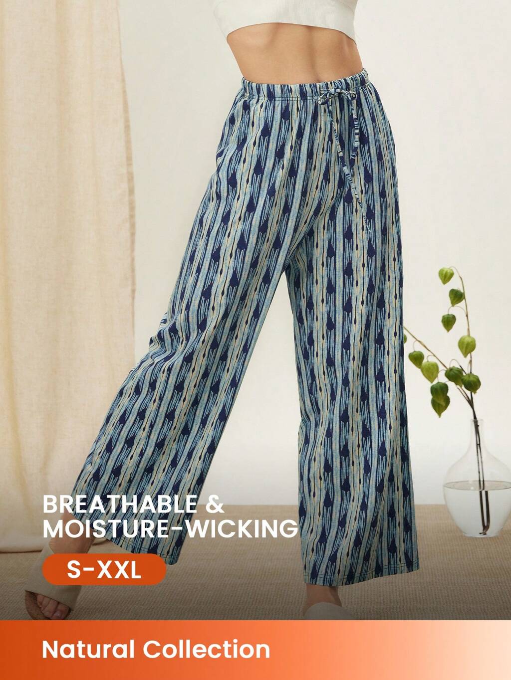 Miękkie bawełniane wzorzyste szerokie spodnie damskie do salonu przewiewne spodnie piżamowe w stylu piżamowym spodnie z kieszeniami piżamowe